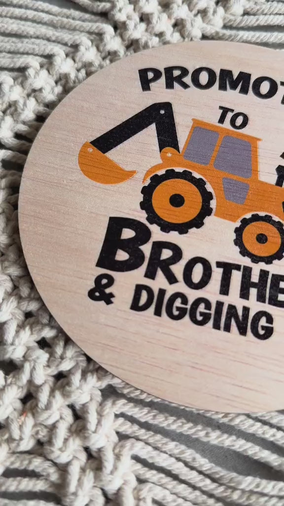 Celebrate the exciting news of becoming a big brother with our Wood UV Printed "Promoted to Big Brother & Digging It" Round Sign! This charming photo prop is perfect for new siblings who adore diggers and construction. Designed to make the announcement memorable, it adds a fun touch to any new baby reveal.