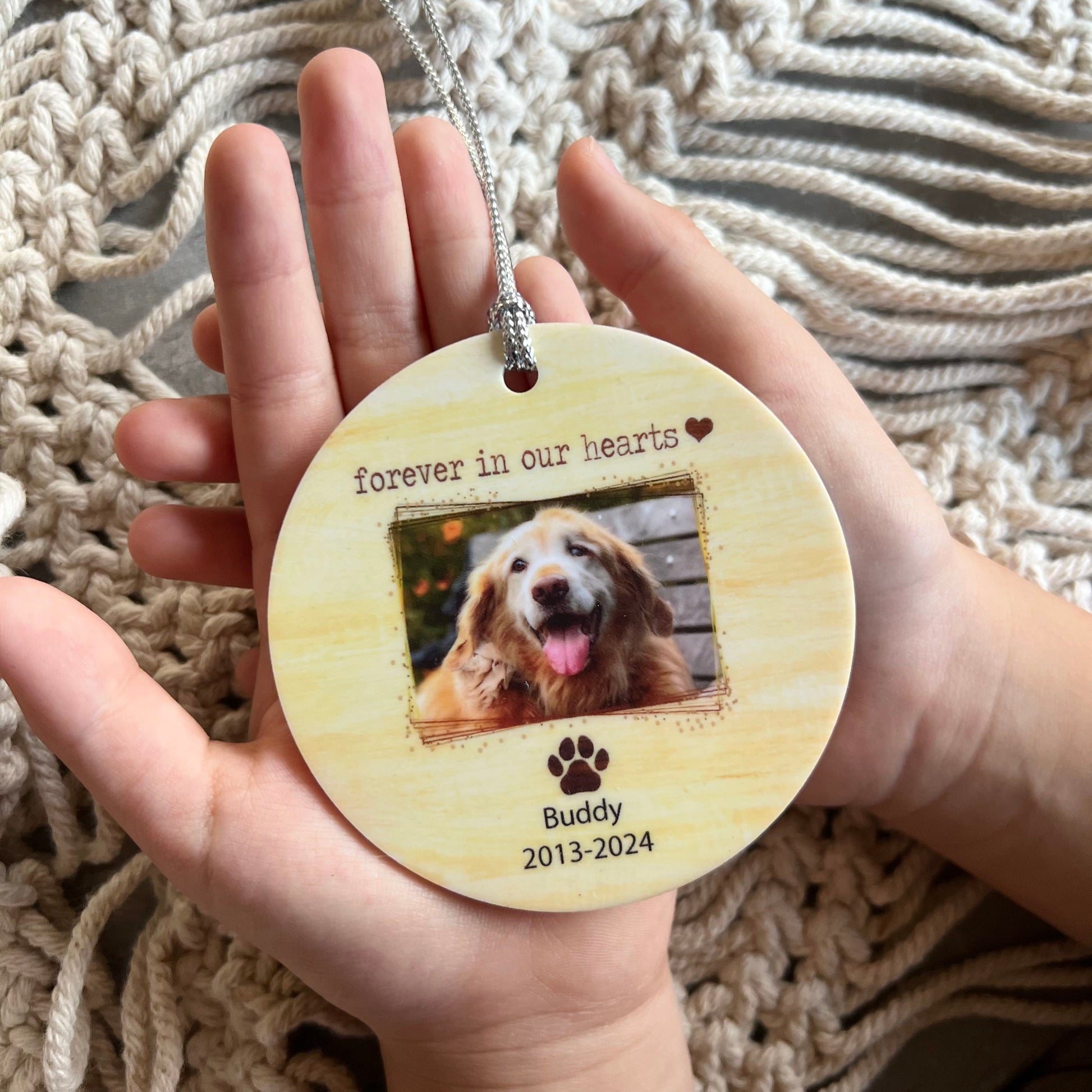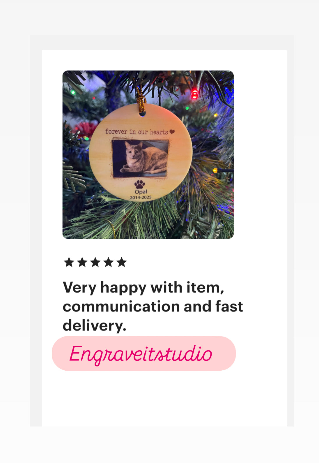 Honour your furry friend with our Custom Pet Memorial Ornament. Made from high-quality acrylic, this custom ornament features your pet's photo and the heartfelt message. Handcrafted in Sydney, it's the perfect keepsake to remember your beloved dog or cat. Order now and cherish their memory.