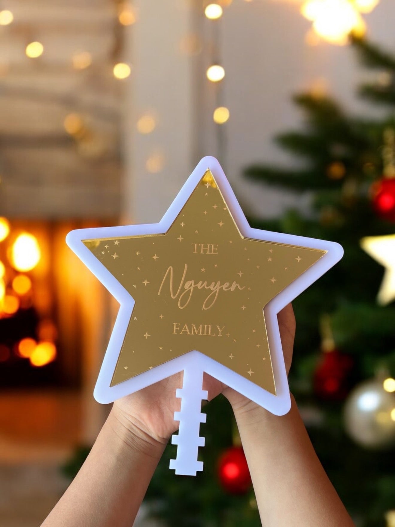 Our Personalised Christmas Tree Star brings a special touch to your holiday décor. These beautiful tree toppers can be used to create a stunning family tradition, year after year. Choose from our wood star, double acrylic star, or wood and acrylic star. Each topper comes with cable ties for easy installation. Make your holiday season even brighter with a custom tree star topper!