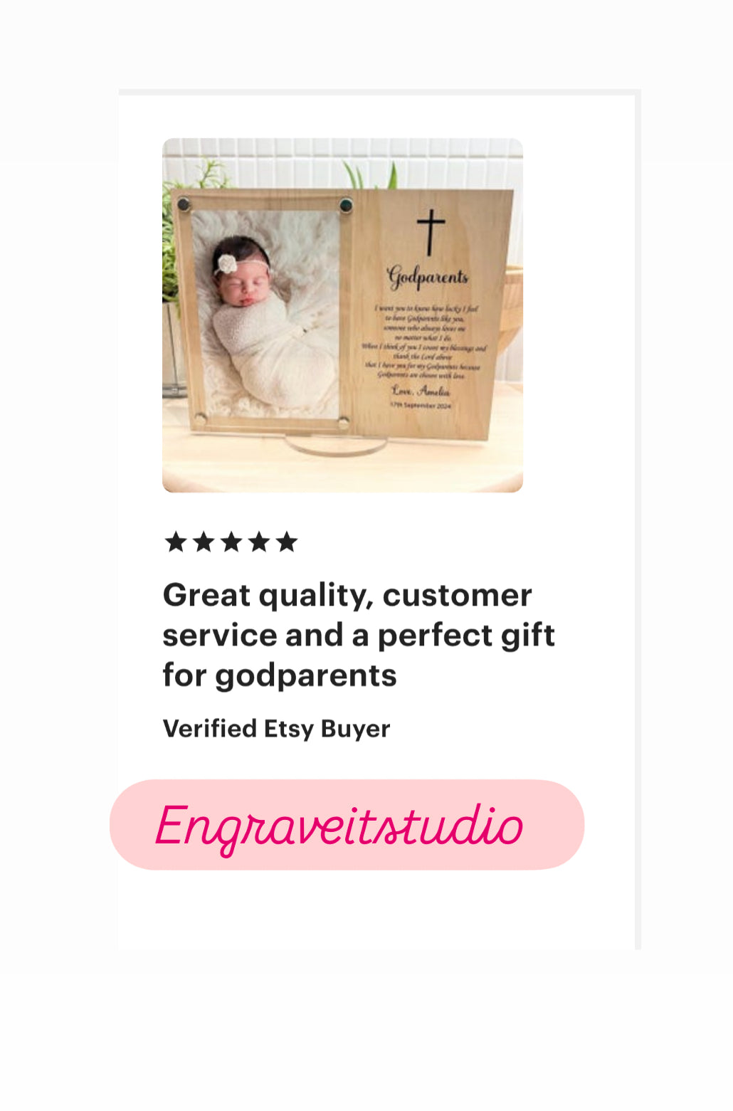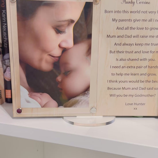 Celebrate the special bond with a personalised Godmother/ God father frame. Handcrafted in Sydney, our wood and acrylic frame features a touching UV-printed poem. Perfect for godparents, this thoughtful gift will remind them of the love and appreciation from their godchild.