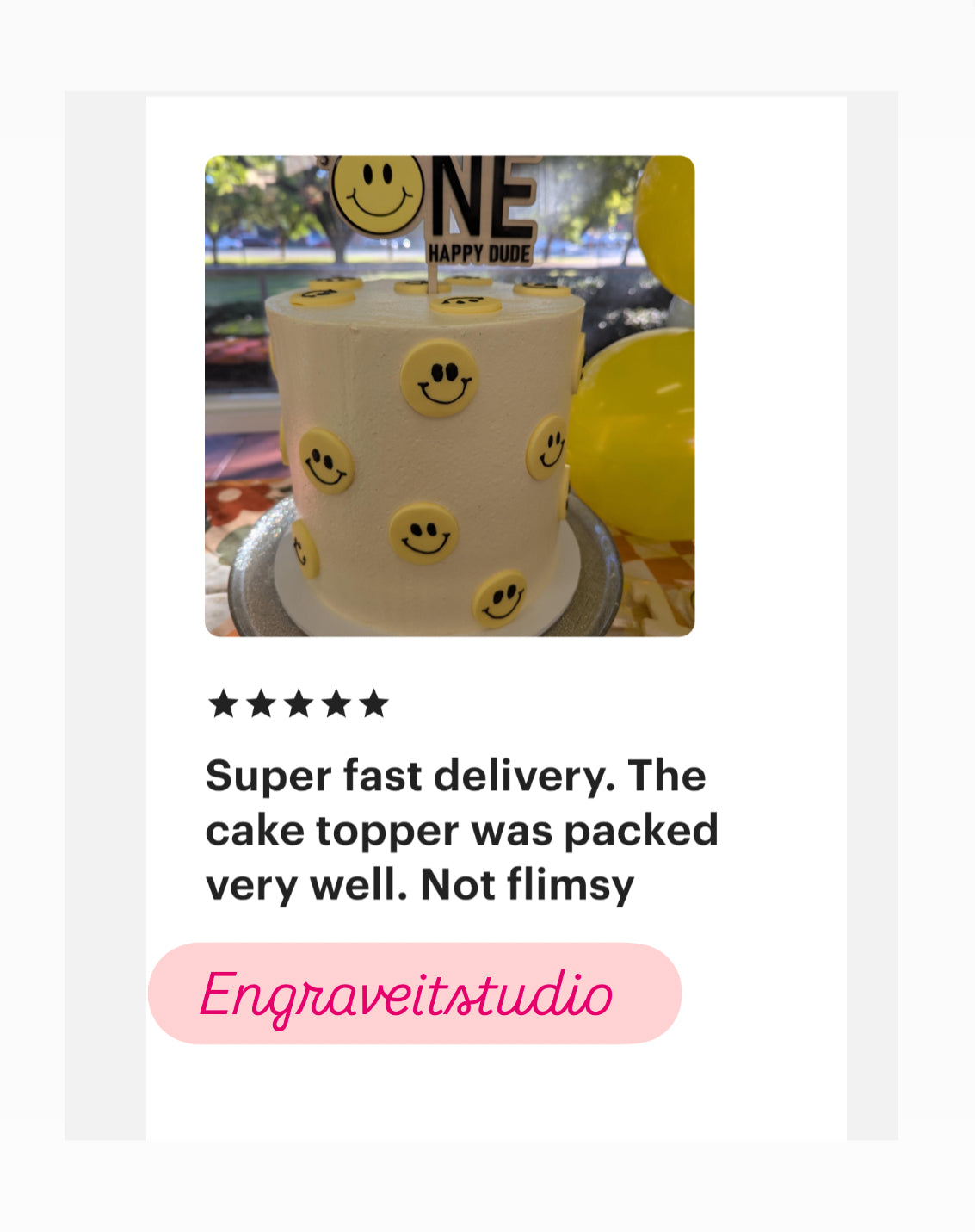 One Happy Dude Personalised Cake Topper Smile face Wood and acrylic