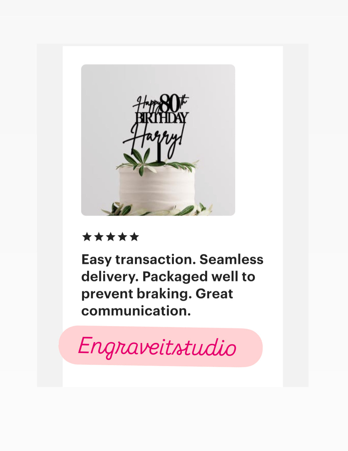 Celebrate a milestone in style with our Personalised 80th Birthday Cake Topper. Crafted from high-quality acrylic and available in various colours, this custom decoration perfectly complements your party theme. Made to order in Sydney, it adds a unique, elegant touch to your cake, making the occasion truly memorable. Approximately 15cm wide. Choose your preferred colour and send us the name you want to feature for a truly personalised celebration.