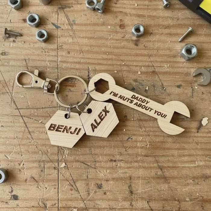 Personalised Spanner and bolt key ring for Dad