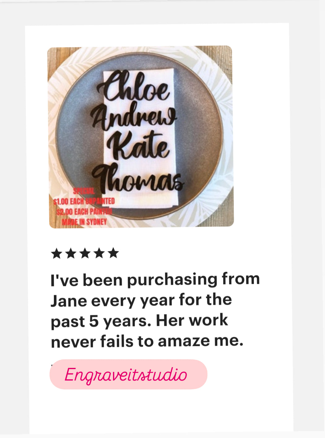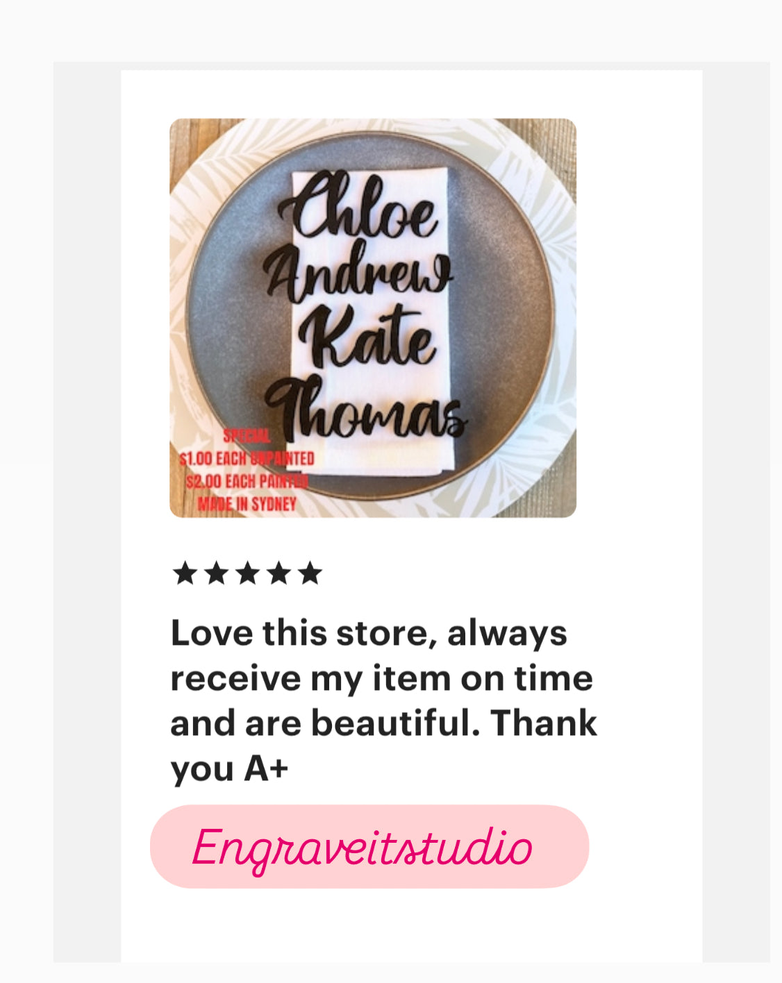 Please note these are made from MDF wood and individually painted to the colour that you like. Giving it an elegant rustic look. As much as I love working with acrylic I prefer my name place cards created this way.
